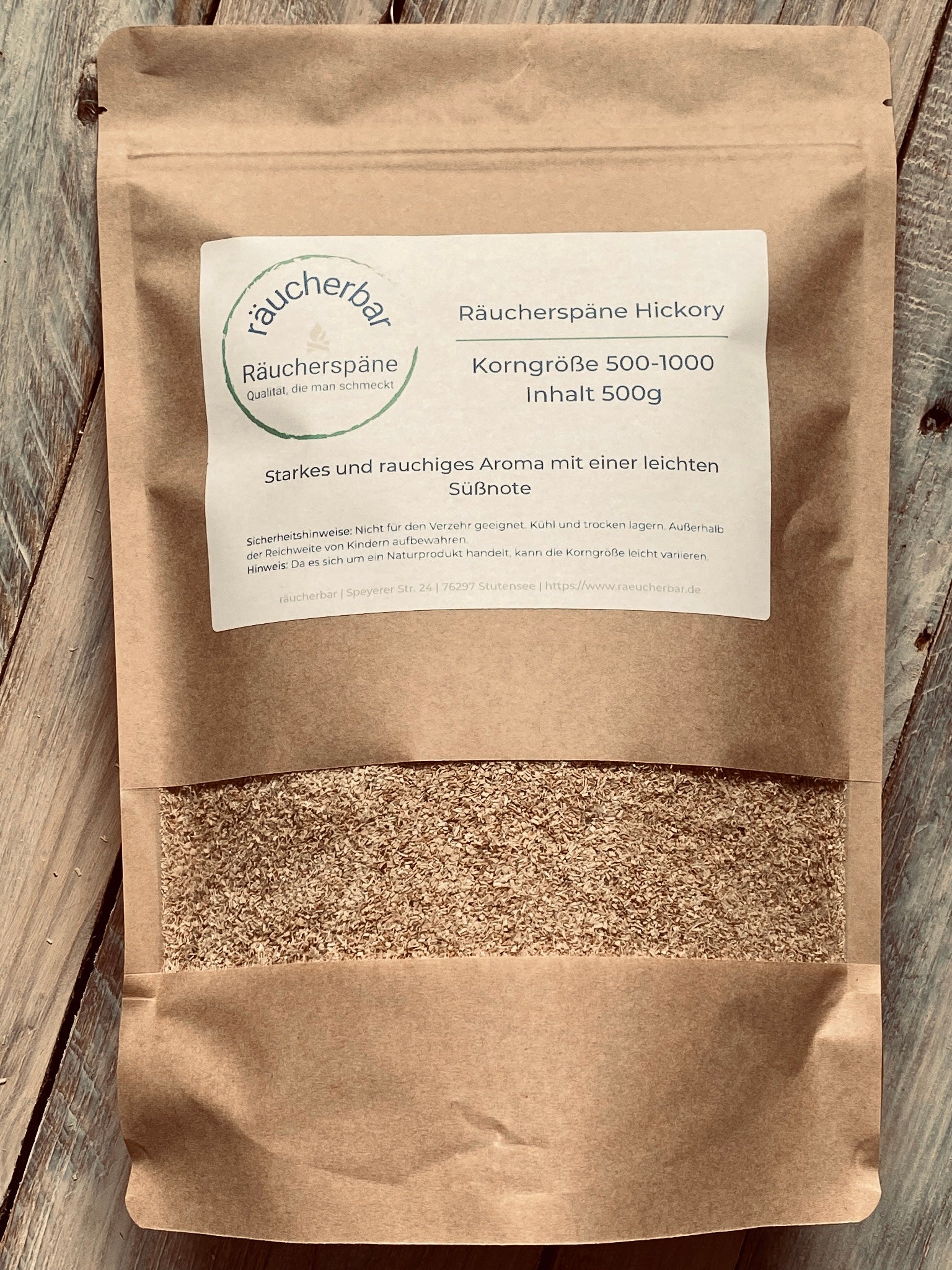 Die Perfekte Räucherspäne zum Räuchern und Smoken von Fleisch und Geflügel, intensiver Rauchgeschmack mit einem hauch von süße durch feinstes Hickoryholz